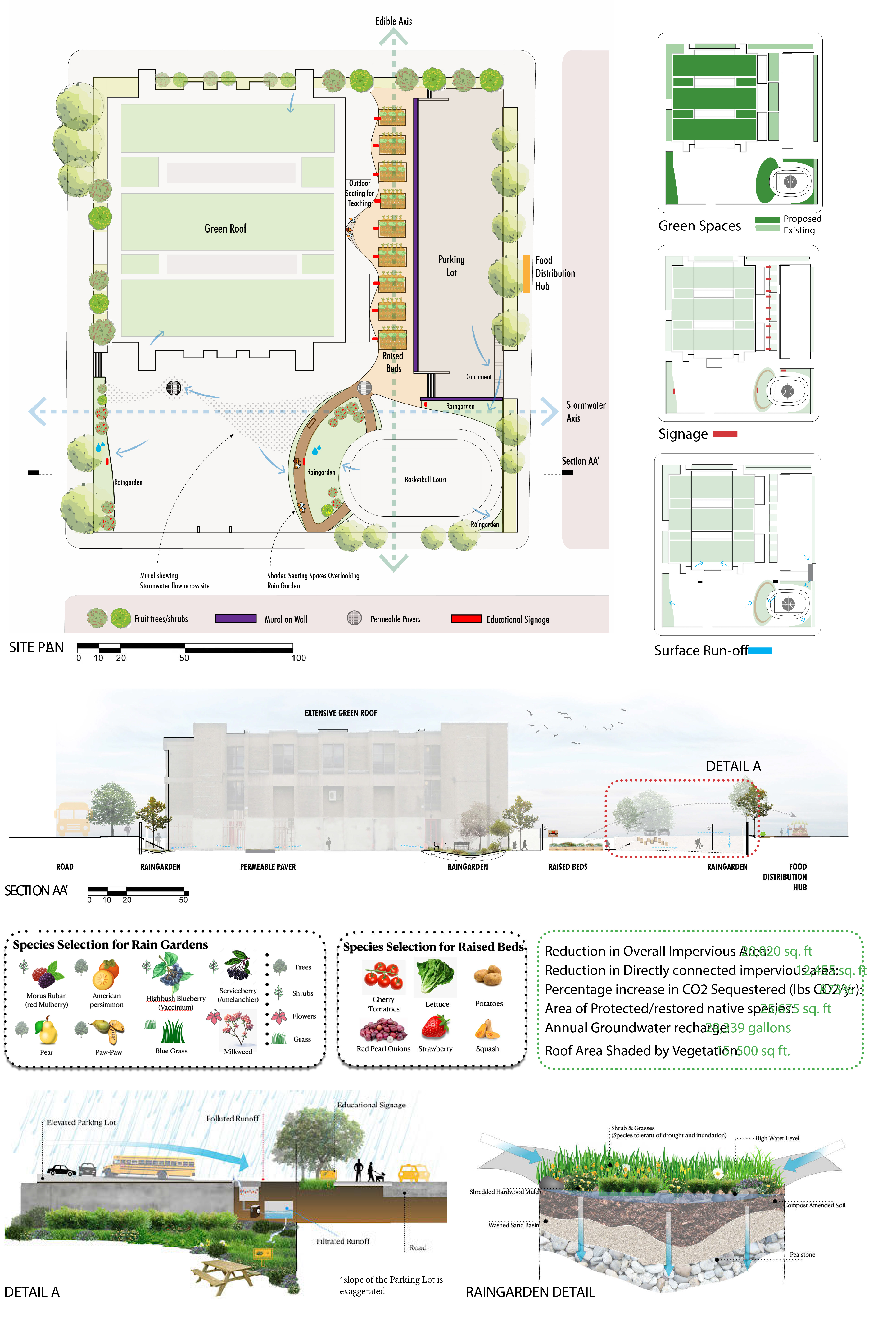 Community engagement was central to this proposal. From the start, the school’s principal and faculty contributed to site selection and design, enabling collaboration with the local school district, which agreed to incorporate our stormwater design in its parking lot repaving project.