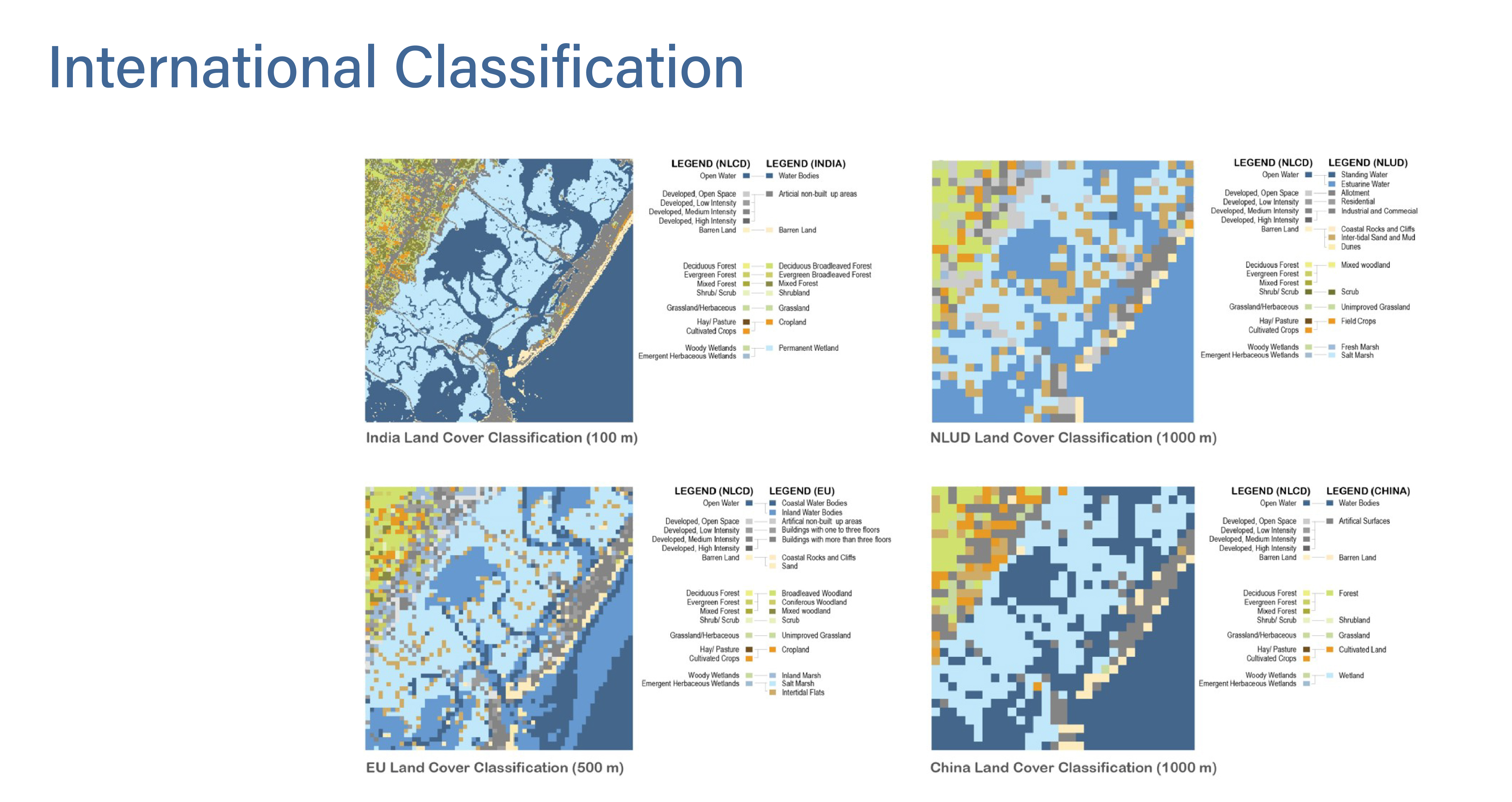Additionally, I applied various international land cover classification standards to the same area to achieve the best results. The application of these different classification systems clearly demonstrates how the spatial and thematic structures of each system shape our understanding of the landscape. A comparison of the legends highlights both similarities and differences in how land cover themes are defined.